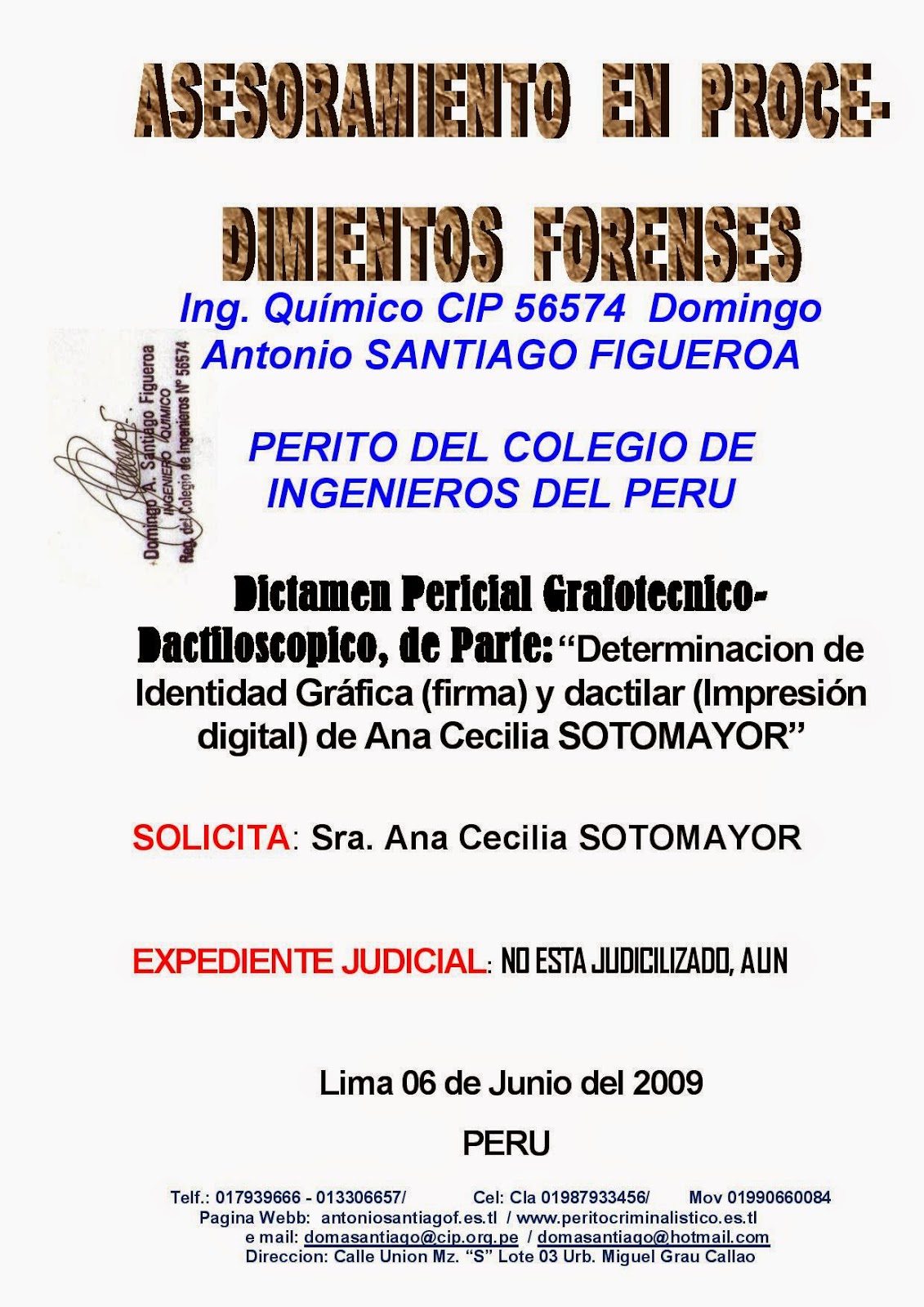 CASO2.- La propiedad de la Sra. VALENZUELA, habia sido vendida con la presunta firma e impresion digital del martillero FELIPE TAM FOX, liquidador del BANCO COMERCIAL DEL PERú, EL ESTUDIO DE LOS DOCUMENTOS DEMOSTRO QUE LA FIRMA Y LA IMPRESION DIGITAN HABIAN SIDO OBTENIDAS DE LA FICHA RENIEC. LA IMPRESION DIGITAL FUE IMPLANTADO EN HOJA EN BLANCO, SOBRE LA QUE SE IMPRIMIO LA LINEA DE PAUTA PARA LA POSTERIOR FALSIFICACION SERVIL DE LA FIRMA.